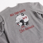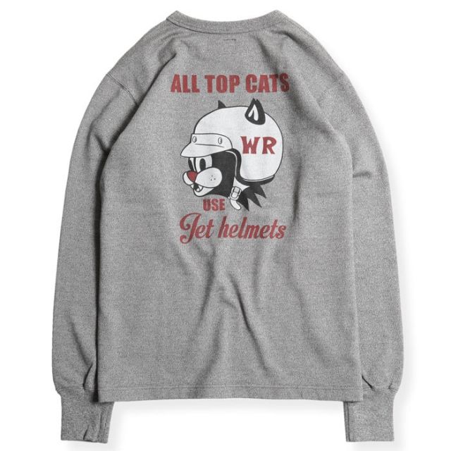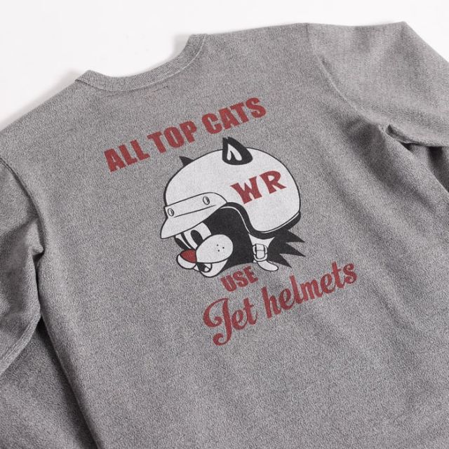 POPなグラフィックが目を惹くKNUCKLE氏による描き下ろし。フロントは実在OILメーカーの旧いアドバタイズをモチーフに人気キャラのサンダーキャットをフューチャー。バックにはBELL HELMETのHORSEをCATへ描き換え、ヘルメットを着用。プリントの前後でストーリーが繋がる設定となり、「出来るCATS(人たち)はヘルメットを被る」の文言でシーズンテーマを示唆する。