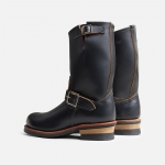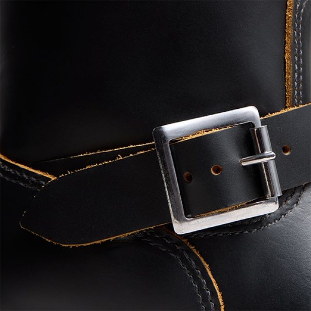 使用されている「ブラック・クロンダイク」は履き込んで革が馴染み、甲やシャフトに深いシワが入り、つま先に傷が入り、黒いレザーの下の茶色の芯地が見えてくる非常に味わい深いレザーです。ワークブーツの特長が特に際立つエンジニアは履く人の愛着をより深めるブーツと言えます。