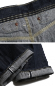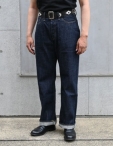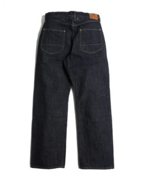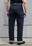 ゆったりとしたワタリと広めの裾幅、大型バックポケット、2本針のシンチバック、各所ヘヴィデューティーなトリプルチェーンステッチ縫製。