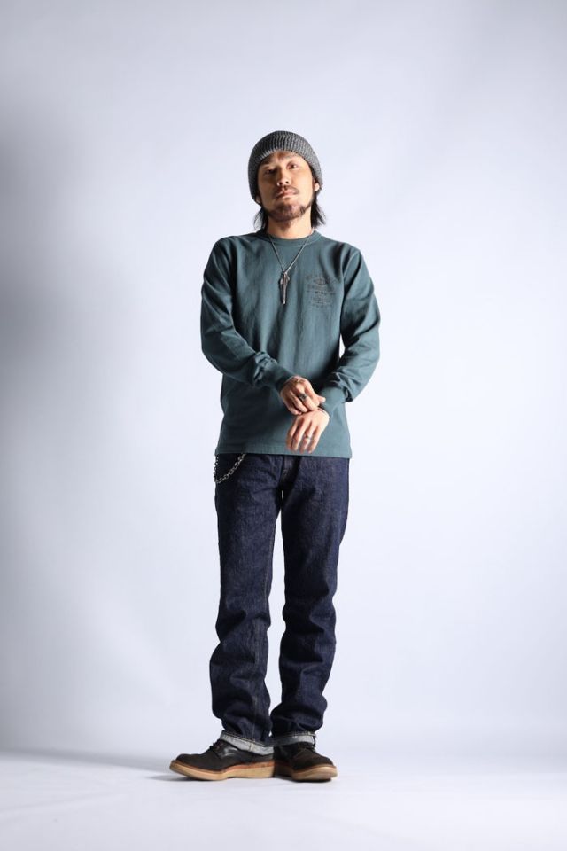 春夏に展開する14番仕様と異なり、秋冬に展開する16番双糸(8番相当)を使用した季節感あるヘビーウェイトなL/S TEE。