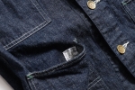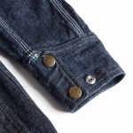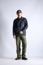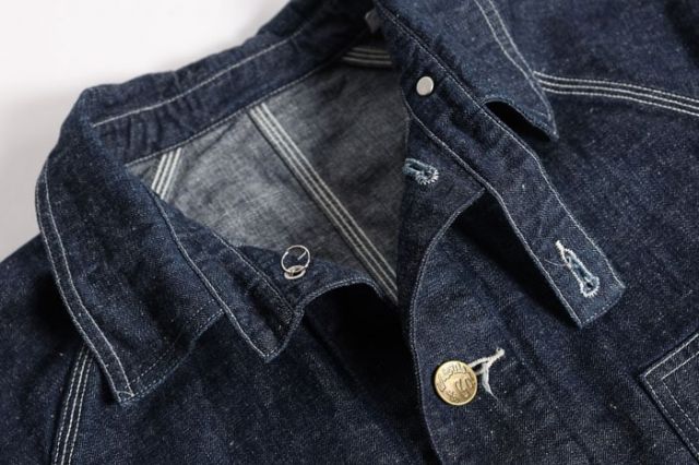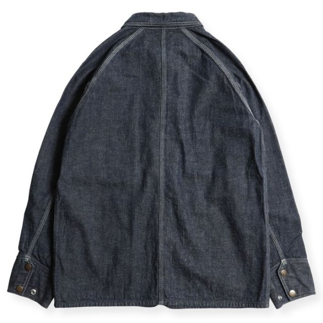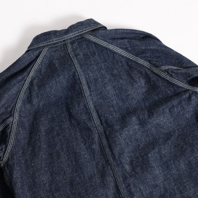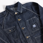 2シーズンに渡り、コレクションでも一際高い人気となったカバーオールの最終章となるTHE KING OF COVERALL。NOFORK & WESTERNENの傑作30’S チンチェンモデルほぼオリジナルに忠実にトレース、即ち、チンストラップ付・チェンジ釦仕様の4ポケモデルとしてリリース。30`S特有のポケット形状・トリプル&ダブルステッチ・20㎜チェンジボタン・チンストラップ・浮き文字スナップボタン・ラグランスリーブ・ポケット補強布のセルビッチヘリンボーン地・セルビッチコットンプリントネーム・シリアルナンバー製造年月日付ユニオンチケットなど幾多のヴィンテージ・ディテールと一部WESTRIDE独自のディテールとを盛り込んで製作。11ozユニオンネップデニム生地は糸・番手・打ち込み本数は勿論、経糸に時折点状にみられる染ムラ、緯糸のアイボリーはインディゴが移染したようなムラ感までをも忠実に再現しました。