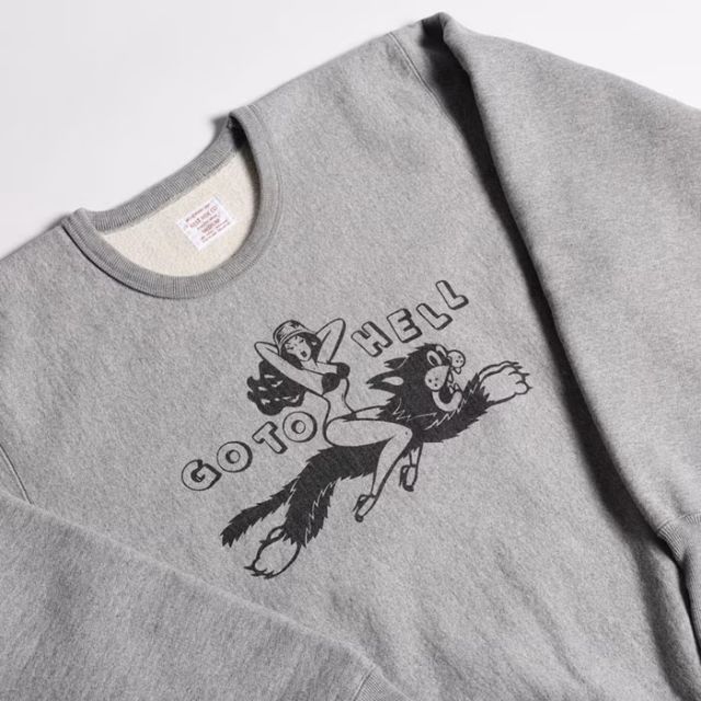 当時GHQでも所有率の高かった英国車、とりわけTRIUMPH往年の名作で知られるアートワークをユニークにアレンジ。ジャーマンメットを被るLADYが跨るのはTIGERならぬTHUNDER CAT(ビリビリキャット)笑。「GO TO HELL=さぁ、行くよ!」の掛け声と共に。