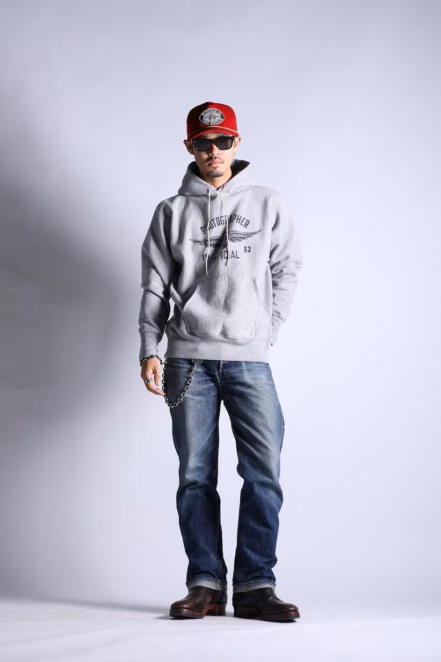 人気上昇中のプルオーバーHOODIEは往年のスタイルを一層シンプルに引き立てます。抜群の着心地を提供するシームレス・ショルダー仕様でリブの編立と長さもよりオールド感ある仕上がりになります。フードのコード部には当時同様にアイレットを採用。シームレスでなければRWとは呼べません。