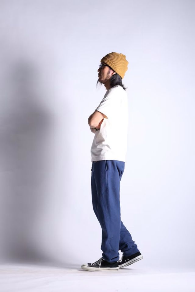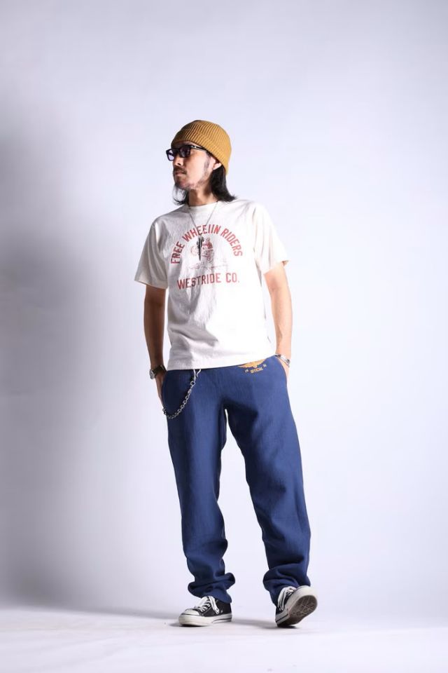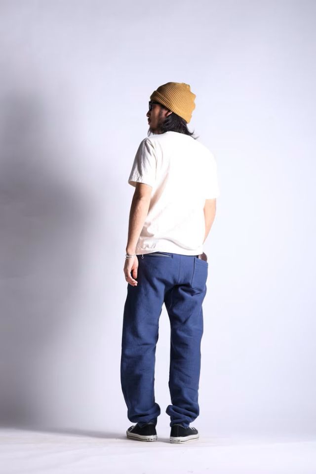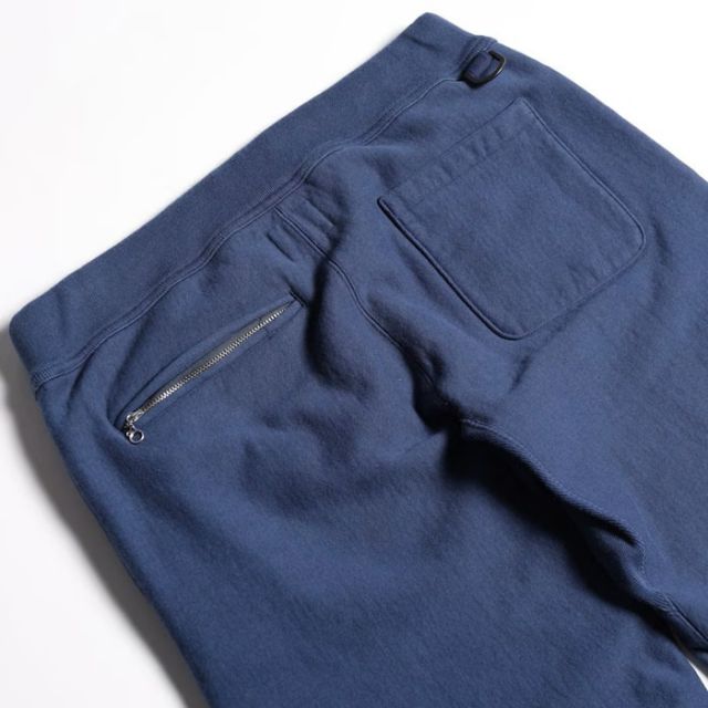 大変レアなRWのスウェットパンツをウエストライド流に提案する人気ボトム。ストレスが掛かり易い脚部外側をシームレスで仕上げ、股下部に大きなガセットを採用。格別な履き心地と奇麗なシルエットを持つ、お薦めの一本となります。過度にはVINTAGE仕様に振らず、左バックポケットにはジッパー、WALLET CHAINに対応する2つのDリングなど、随所にオリジナルのディテールを盛り込んで製作。ウエスト部はラバーバンドとドローコードを採用。ワンポイントのプリント入り。