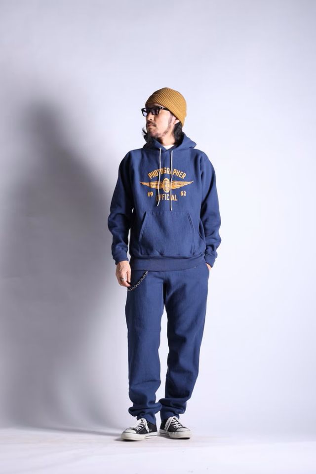 24FWでの一新から、既に多くのファンから愛され「ウエストライドのH/Wスウェット」として定着した感のある自信作。表側から順に14番/20番/7番糸を使用した3層のオリジナル生地は、丈夫で着心地も良く保温性にも優れている。また、経年変化による風合いも抜群。60’Sの銘品RWをモチーフとして、シームレスショルダーなどの古き良き前時代的ディテールを盛り込んで製作。カラーはオリジナルに極近しい色味で仕上げた杢GRAYとカレッジ物のイメージを再現するNAVYの2色。共にスタイルやデザインと掛け合わさり新鮮な印象を与える色味です。