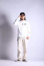 春夏用L/S TEEとしてリリースする、S/S TEEと同じ14番単糸を使用した長袖TEEは発売以来、大人気。14番TEE同様の生地番手を使用すことで春夏シーズンでのより多くの着用を可能にすると共に、秋冬リリースとなる16番双糸(8番相当)の肉厚ロンTEEとの差別化を図る。