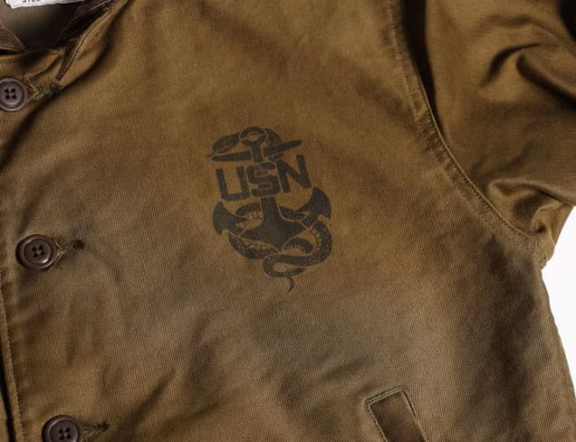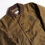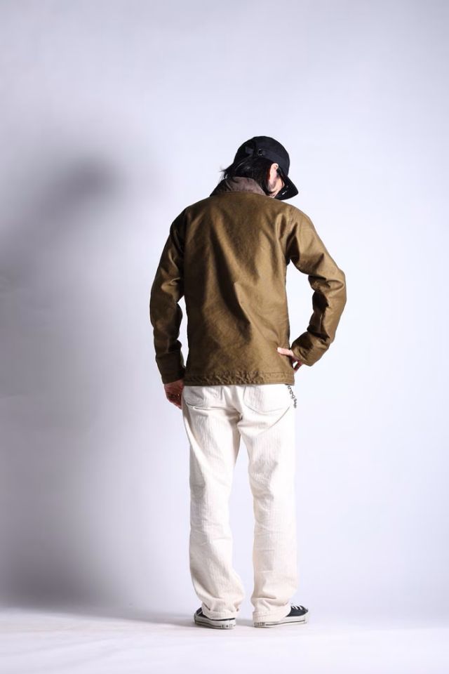 人気のN-1デッキジャケットをベースにSPRING/FALL仕様の民間バージョンとの設定でWESTRIDE独自の解釈で再構築。USNデッキジャケットは、アメリカ海軍U.S. NAVYの艦艇乗組員に支給されていた防寒用ジャケットの総称。縫製スペックなどは当時物を完璧に再現しています。生地は高密度ギザコットンコードを採用。世界三大コットンの一つであるギザコットンを緯糸に限界まで打ち込むことで重量感と光沢感が生まれ、それを着込むことでまた柔らかさが出てきます。裏地にはコットンナイロン高密度ウェザークロスを採用。襟にはパイルとパイルの間の間隔を広く設計し毛足も短めにカットした13Wコールを装備。左胸には米海軍の象徴「USNアンカー」をベースに、巻かれたロープをSNAKEへと描き換えたデザインを特殊手揉みプリント(#OD BODYは染み込みプリント)。往年のオールド感と徹底した作り込みを持つ今季メインジャケットです。